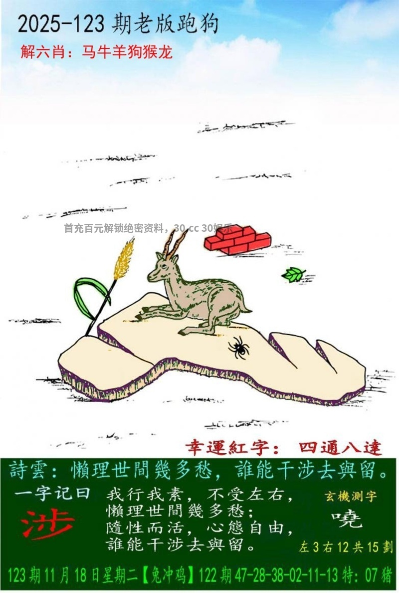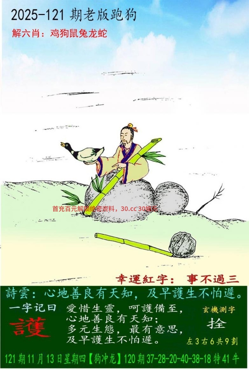 126期【独家玄机谜语】開:發00準! ≤人间真道苍桑至,奴才无福入深渊≥ 解:人间真道是牛马,苍桑至虎鼠,奴才指狗,无福入深渊鸡 综合取肖:牛马虎鼠狗鸡 |